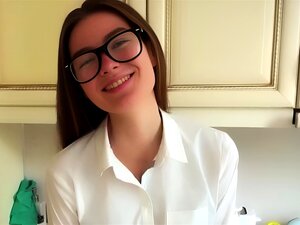 Passeio de pau para se tornar inteligente. Maduro professor Pune uma gracinha com seu pau latejante